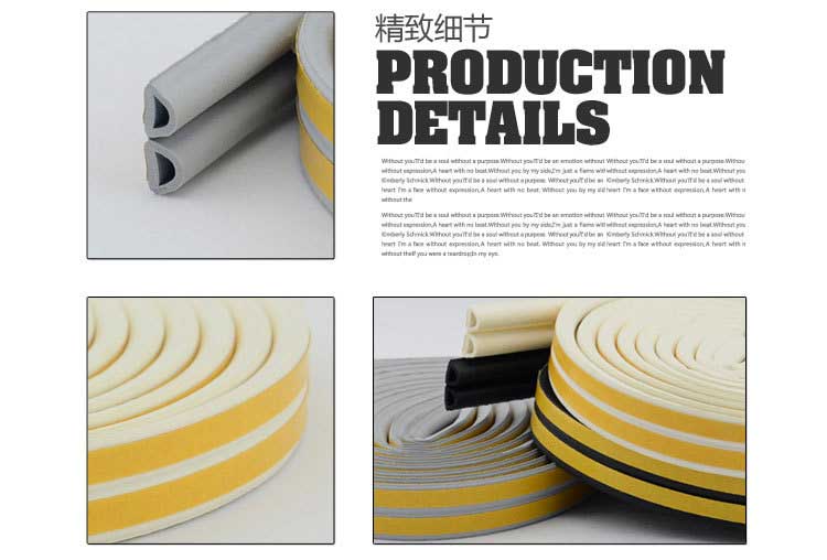 產(chǎn)品特點(diǎn): 自粘式木門密封條采用三元乙丙(EPDM)橡膠發(fā)泡而成,造就了它卓越的特性。