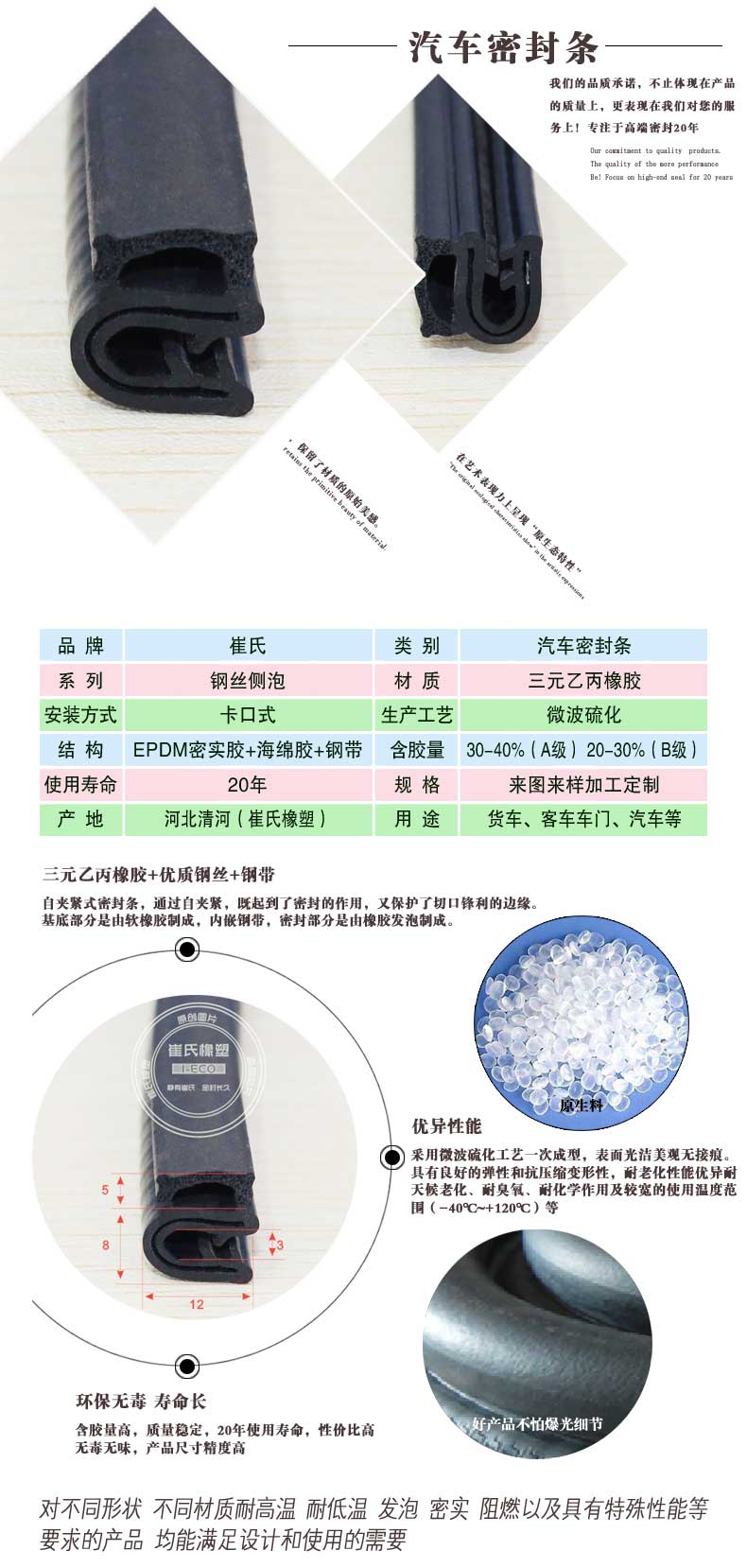 5 20年使用壽命,解決汽車密封條經(jīng)常更換的麻煩。