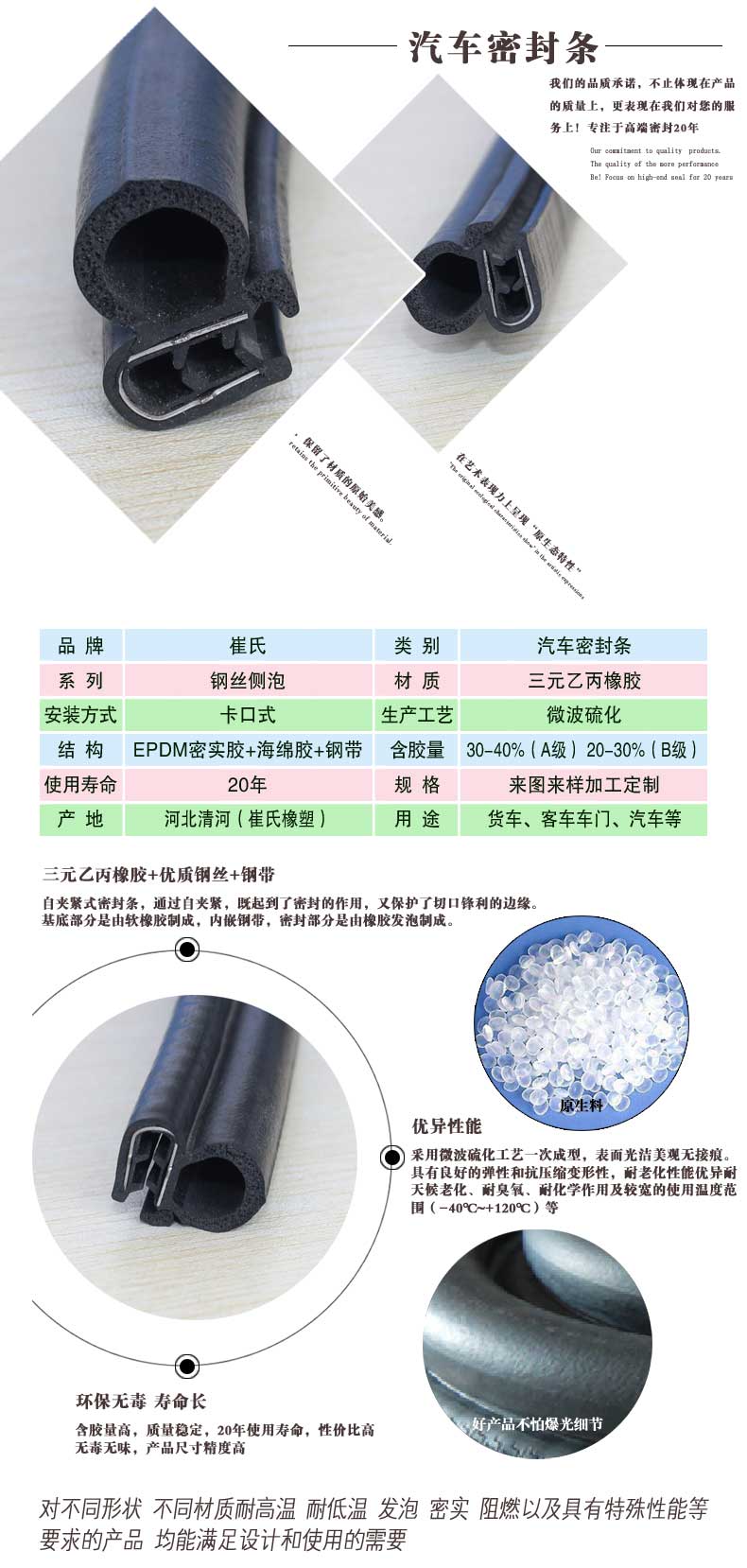 5 20年使用壽命,解決汽車密封條經(jīng)常更換的麻煩。