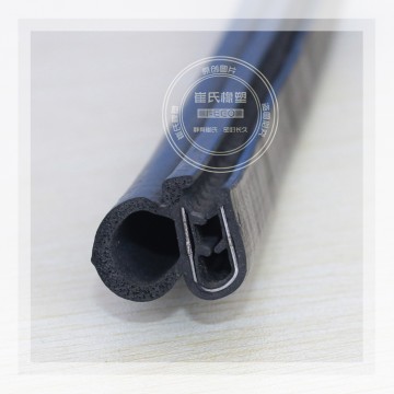 產(chǎn)品結(jié)構(gòu):門 框密封條不但要保證密封性,還要承受關(guān)門時(shí)的沖擊力,因此它既要有彈性,也要有韌性,主要由密實(shí)膠基體和海綿膠泡管兩部分組成。密實(shí)膠內(nèi)含有金屬骨架,起 到加強(qiáng)膠條的定型和固定作用。海綿膠泡管柔軟并富有彈性,起著受壓變形,卸壓反彈的功能。此外,有一些密封條的唇邊部分由彩色膠構(gòu)成或者貼有織物,色調(diào)美 觀有裝飾作用。