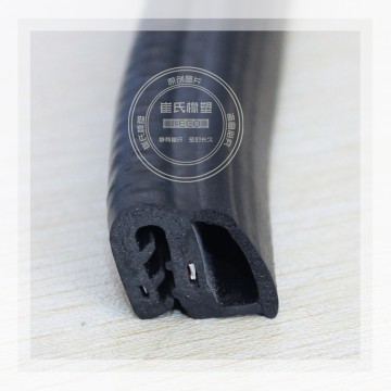 產(chǎn)品結(jié)構(gòu):門 框密封條不但要保證密封性,還要承受關(guān)門時(shí)的沖擊力,因此它既要有彈性,也要有韌性,主要由密實(shí)膠基體和海綿膠泡管兩部分組成。密實(shí)膠內(nèi)含有金屬骨架,起 到加強(qiáng)膠條的定型和固定作用。海綿膠泡管柔軟并富有彈性,起著受壓變形,卸壓反彈的功能。此外,有一些密封條的唇邊部分由彩色膠構(gòu)成或者貼有織物,色調(diào)美 觀有裝飾作用。