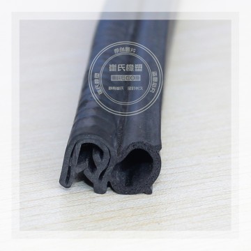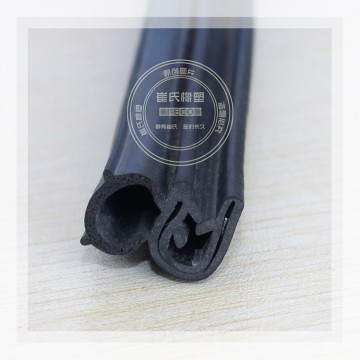 產品結構:門 框密封條不但要保證密封性,還要承受關門時的沖擊力,因此它既要有彈性,也要有韌性,主要由密實膠基體和海綿膠泡管兩部分組成。密實膠內含有金屬骨架,起 到加強膠條的定型和固定作用。海綿膠泡管柔軟并富有彈性,起著受壓變形,卸壓反彈的功能。此外,有一些密封條的唇邊部分由彩色膠構成或者貼有織物,色調美 觀有裝飾作用。