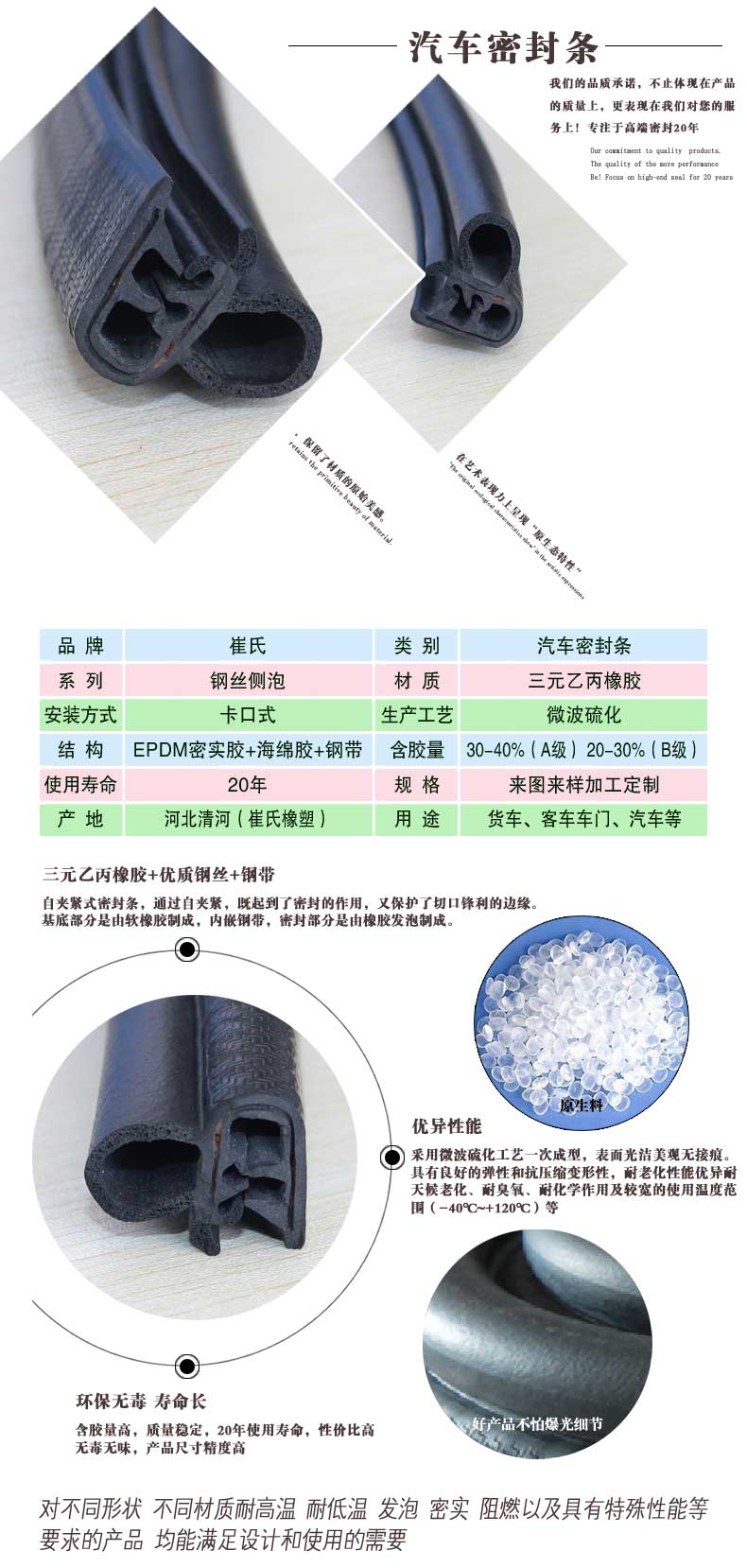 5 20年使用壽命,解決汽車密封條經(jīng)常更換的麻煩。