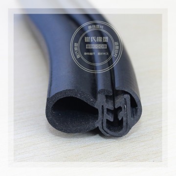產(chǎn)品結(jié)構(gòu):門 框密封條不但要保證密封性,還要承受關(guān)門時(shí)的沖擊力,因此它既要有彈性,也要有韌性,主要由密實(shí)膠基體和海綿膠泡管兩部分組成。密實(shí)膠內(nèi)含有金屬骨架,起 到加強(qiáng)膠條的定型和固定作用。海綿膠泡管柔軟并富有彈性,起著受壓變形,卸壓反彈的功能。此外,有一些密封條的唇邊部分由彩色膠構(gòu)成或者貼有織物,色調(diào)美 觀有裝飾作用。