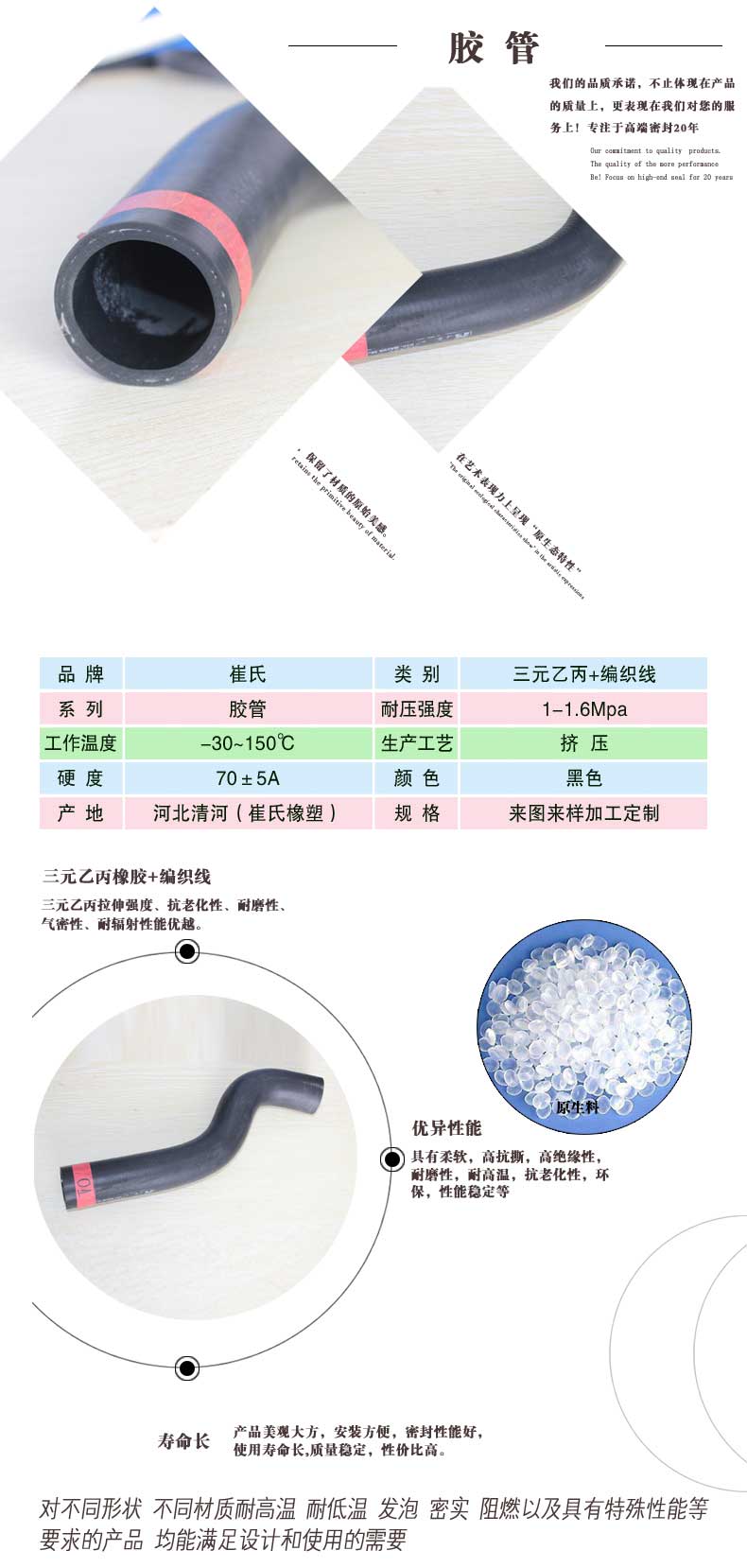 1.膠管選用特種合成橡膠配合制成,具有優(yōu)良的耐油、耐熱、耐老化性能。
