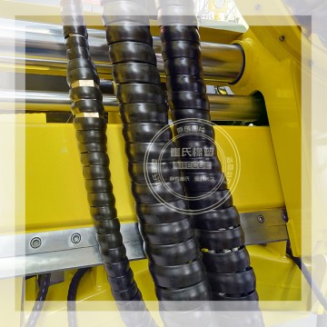 螺旋保護(hù)套約于2002年引入我國(guó)。現(xiàn)已廣泛應(yīng)用于挖掘機(jī)、裝載機(jī)、壓路機(jī)、攤鋪機(jī)、叉車(chē)、吊車(chē)、自卸車(chē)等工程機(jī)械和注塑機(jī)設(shè)備。主要安裝于液壓膠管、電線、電纜等產(chǎn)品的外部。其功能是增強(qiáng)液壓膠管、電線、電纜等內(nèi)部產(chǎn)品的耐磨、抗靜電和抗紫外線性能,在各種惡劣環(huán)境下對(duì)液壓膠管等內(nèi)部產(chǎn)品起到安全保護(hù)作用。液壓膠管、電線、電纜等產(chǎn)品安裝螺旋保護(hù)套不但可以提高美觀度,而且可以使內(nèi)部產(chǎn)品的壽命延長(zhǎng)3年以上。與傳統(tǒng)的金屬護(hù)簧產(chǎn)品相比,膠管保護(hù)套安裝簡(jiǎn)便,耐磨性更好;抗老化、抗腐蝕性能強(qiáng);更能有力的對(duì)液壓膠管、電線、電纜等產(chǎn)品外表面進(jìn)行防老化和抗磨擦保護(hù);具有更優(yōu)異、更便捷、更環(huán)保節(jié)能的效果。