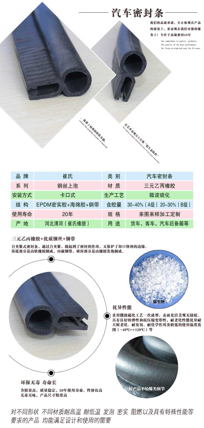 5 20年使用壽命,解決汽車密封條經(jīng)常更換的麻煩。