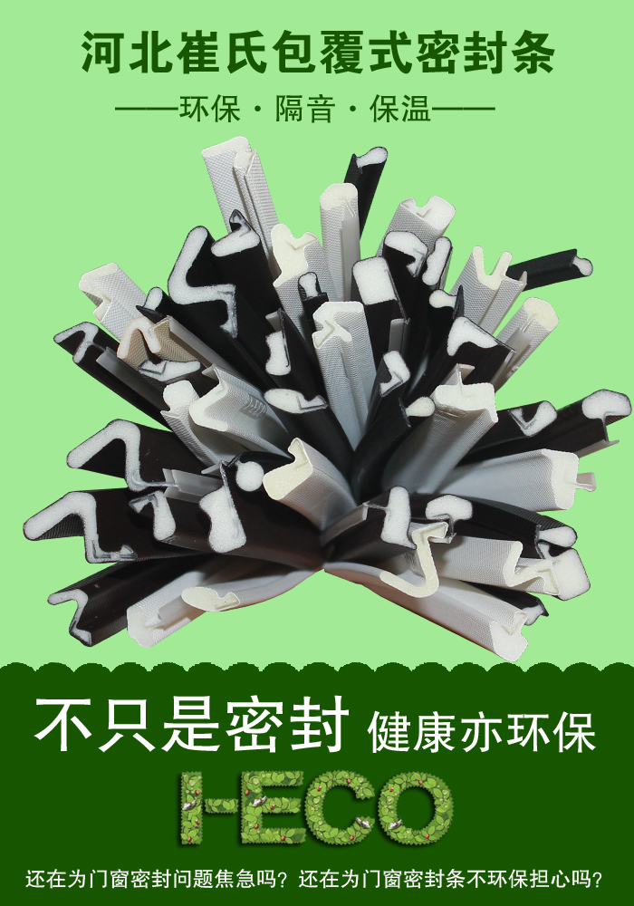 河北崔氏橡塑一直致力于解決環(huán)保密封及市場上各類門窗密封效果欠佳的問題,致力于從根本上消除現(xiàn)代家居的環(huán)保密封缺陷?;诙嗄陱氖麻T窗密封產(chǎn)品的專業(yè)經(jīng)驗以及對市場和客戶需求的了解,崔氏橡塑引進德國先進的設(shè)備及技術(shù),與德國密封技術(shù)行業(yè)專家共同研發(fā)推出了性能更加優(yōu)越安裝更加方便,使用更加節(jié)能、環(huán)保的高級新型密封條——包覆式密封條。該產(chǎn)品采用多重復(fù)合共擠,密封性、耐用性、環(huán)保性、美觀性等性能已超越以往所有傳統(tǒng)密封條。