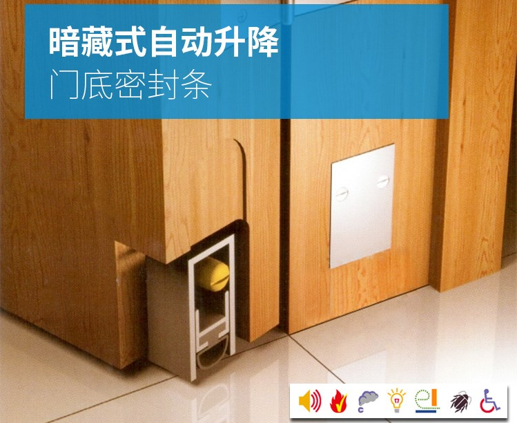 為了真正實現(xiàn)靜音升級,河北崔氏又引進自動升降式門底密封條配合I-ECO包覆式密封條使用,實現(xiàn)雙重隔音。自動升降式門底密封條安裝于門扇底部,關上門時,門扇側面銅條受壓收縮,門底自動彈出封條,封閉門底縫隙;開門時,銅條彈出,密封條回縮到門扇底部?!皫住毙巍癠”形安裝不會影響門的外觀。