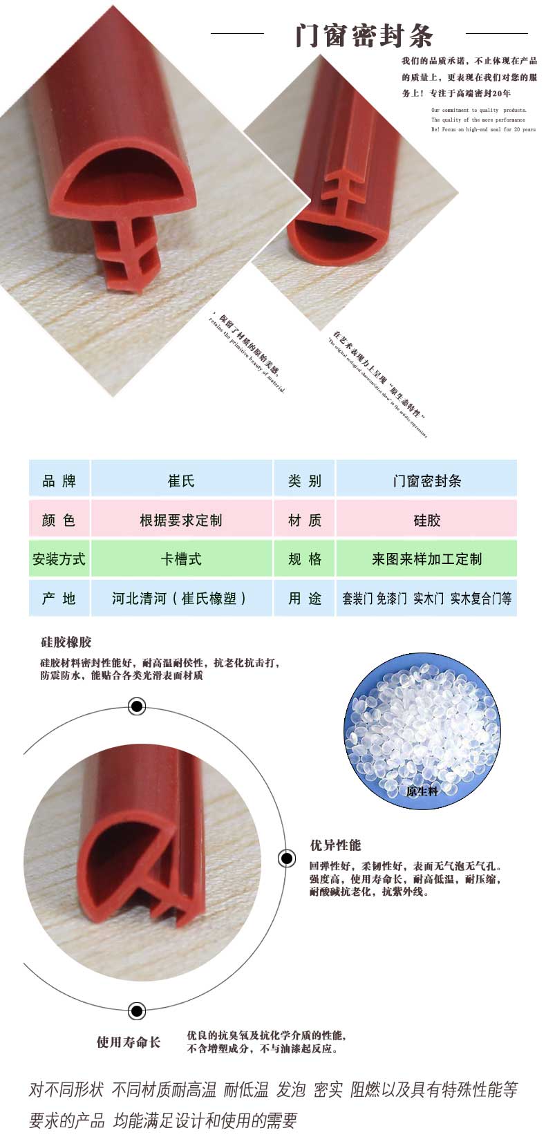 1.我們所有開槽型木門密封條產(chǎn)品材質(zhì):有 PVC 、 硅橡膠、PVC-NBR (橡塑復(fù)合)、 TPE 、 EPDM 等材質(zhì)可供選擇。