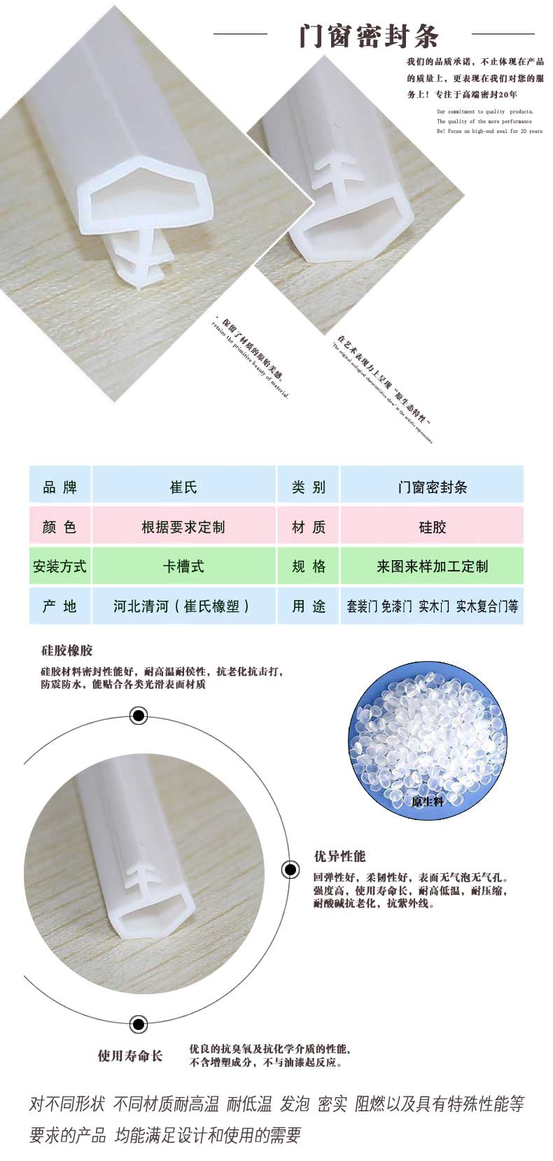 1.我們所有開槽型木門密封條產(chǎn)品材質(zhì):有 PVC 、 硅橡膠、PVC-NBR (橡塑復(fù)合)、 TPE 、 EPDM 等材質(zhì)可供選擇。
