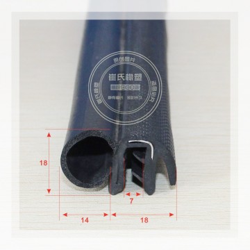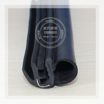 產(chǎn)品結(jié)構(gòu):門 框密封條不但要保證密封性,還要承受關(guān)門時的沖擊力,因此它既要有彈性,也要有韌性,主要由密實膠基體和海綿膠泡管兩部分組成。密實膠內(nèi)含有金屬骨架,起 到加強膠條的定型和固定作用。海綿膠泡管柔軟并富有彈性,起著受壓變形,卸壓反彈的功能。此外,有一些密封條的唇邊部分由彩色膠構(gòu)成或者貼有織物,色調(diào)美 觀有裝飾作用。