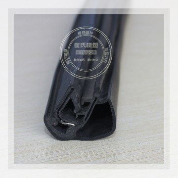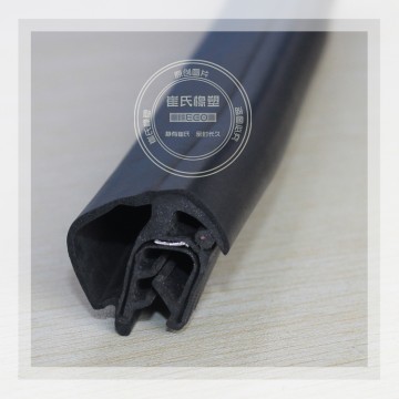 產(chǎn)品結(jié)構(gòu):門 框密封條不但要保證密封性,還要承受關(guān)門時(shí)的沖擊力,因此它既要有彈性,也要有韌性,主要由密實(shí)膠基體和海綿膠泡管兩部分組成。密實(shí)膠內(nèi)含有金屬骨架,起 到加強(qiáng)膠條的定型和固定作用。海綿膠泡管柔軟并富有彈性,起著受壓變形,卸壓反彈的功能。此外,有一些密封條的唇邊部分由彩色膠構(gòu)成或者貼有織物,色調(diào)美 觀有裝飾作用。