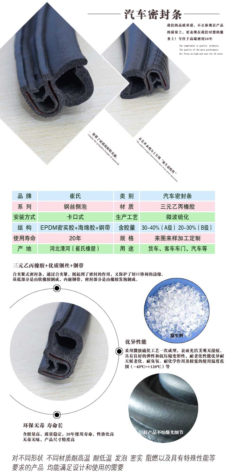 5 20年使用壽命,解決汽車密封條經常更換的麻煩。