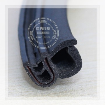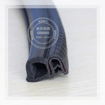 產品結構:門 框密封條不但要保證密封性,還要承受關門時的沖擊力,因此它既要有彈性,也要有韌性,主要由密實膠基體和海綿膠泡管兩部分組成。密實膠內含有金屬骨架,起 到加強膠條的定型和固定作用。海綿膠泡管柔軟并富有彈性,起著受壓變形,卸壓反彈的功能。此外,有一些密封條的唇邊部分由彩色膠構成或者貼有織物,色調美 觀有裝飾作用。