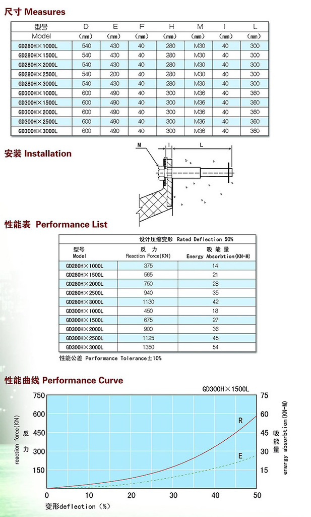 GD型(半圓型)橡膠護(hù)舷是在D型護(hù)舷基礎(chǔ)上開發(fā)的一種變形產(chǎn)品,原D型護(hù)舷為中間錨固,使用時(shí)容易造成護(hù)舷脫落。超級(jí)D型護(hù)舷為內(nèi)埋整體鋼板,雙排錨固,加之錨固螺栓加大,其錨固力比原D型護(hù)舷增大二位左右,使用表明,其錨固力滿足設(shè)計(jì)要求,受到設(shè)計(jì)和使用單位歡迎。