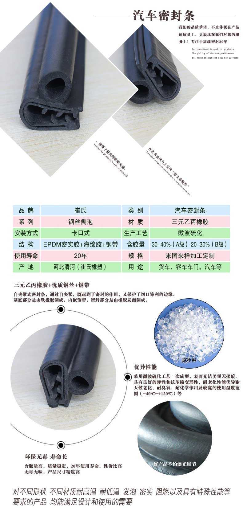 5 20年使用壽命,解決汽車密封條經(jīng)常更換的麻煩。