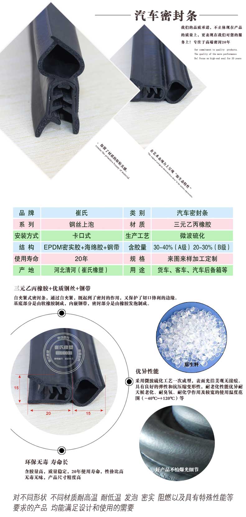 5 20年使用壽命,解決汽車密封條經(jīng)常更換的麻煩。